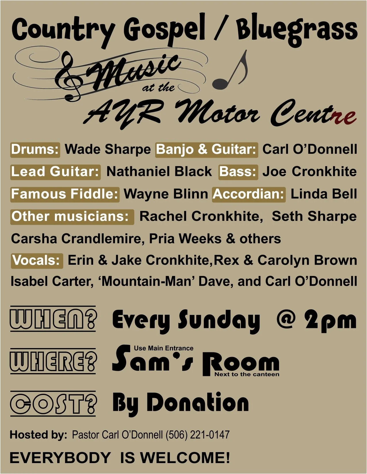 All the Donations go to the Pembroke, NB Baptist Church. This Church services are ministered by Pastor Carl OโDonnell.